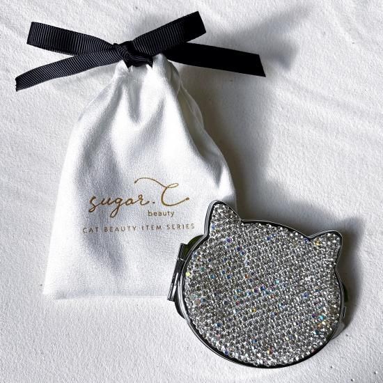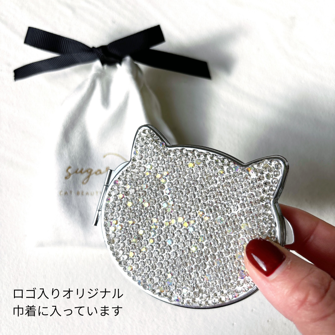 キラキラ輝くクリスタルをあしらったネコの形のハンドミラーです。