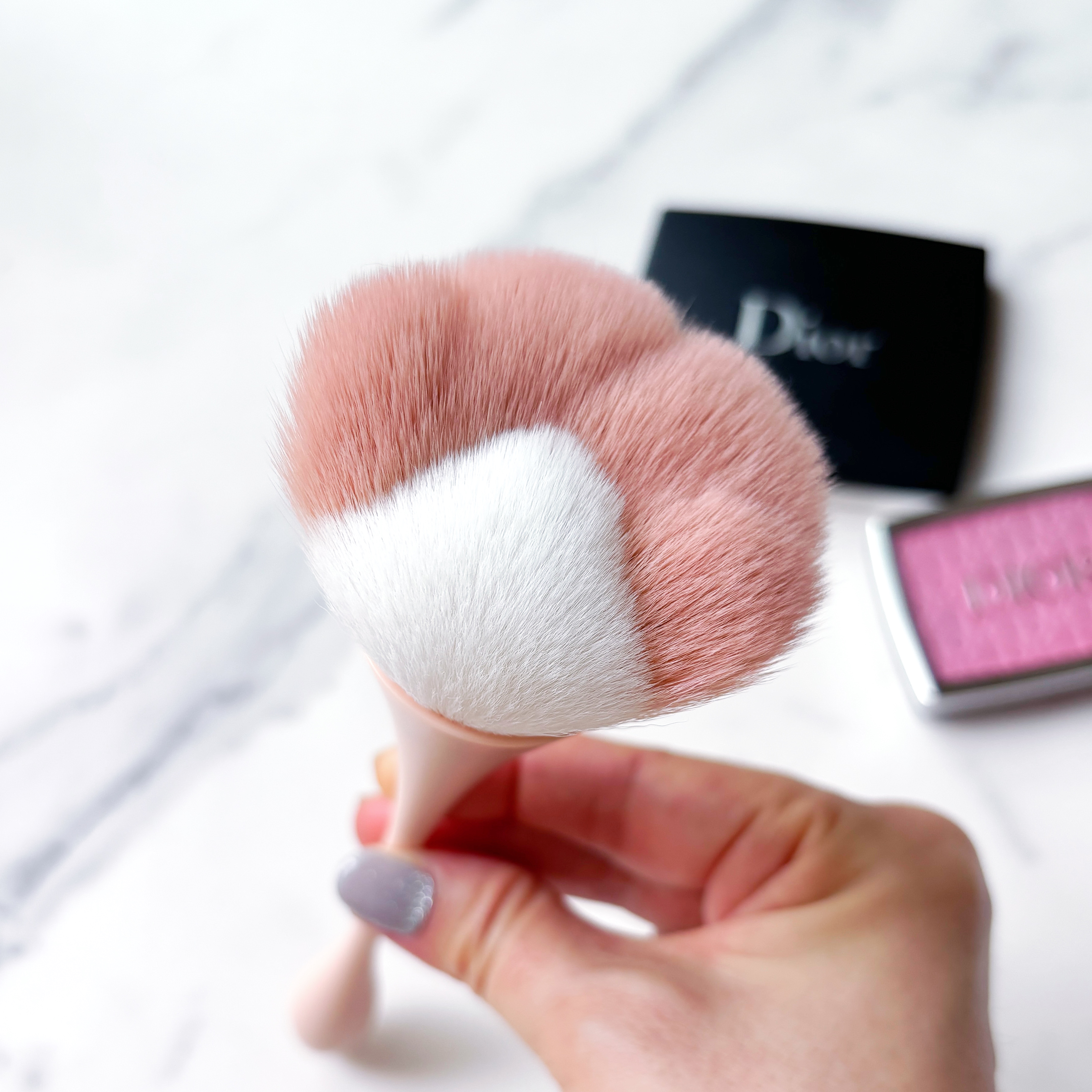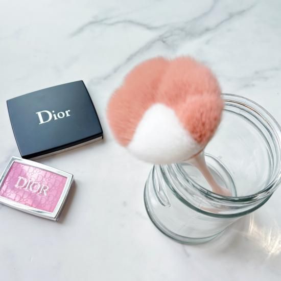 3.メイクの仕上げに何もついていないニクキュウブラシで肌を磨くと、肌の透明感がアップ。チークのボカシにも。