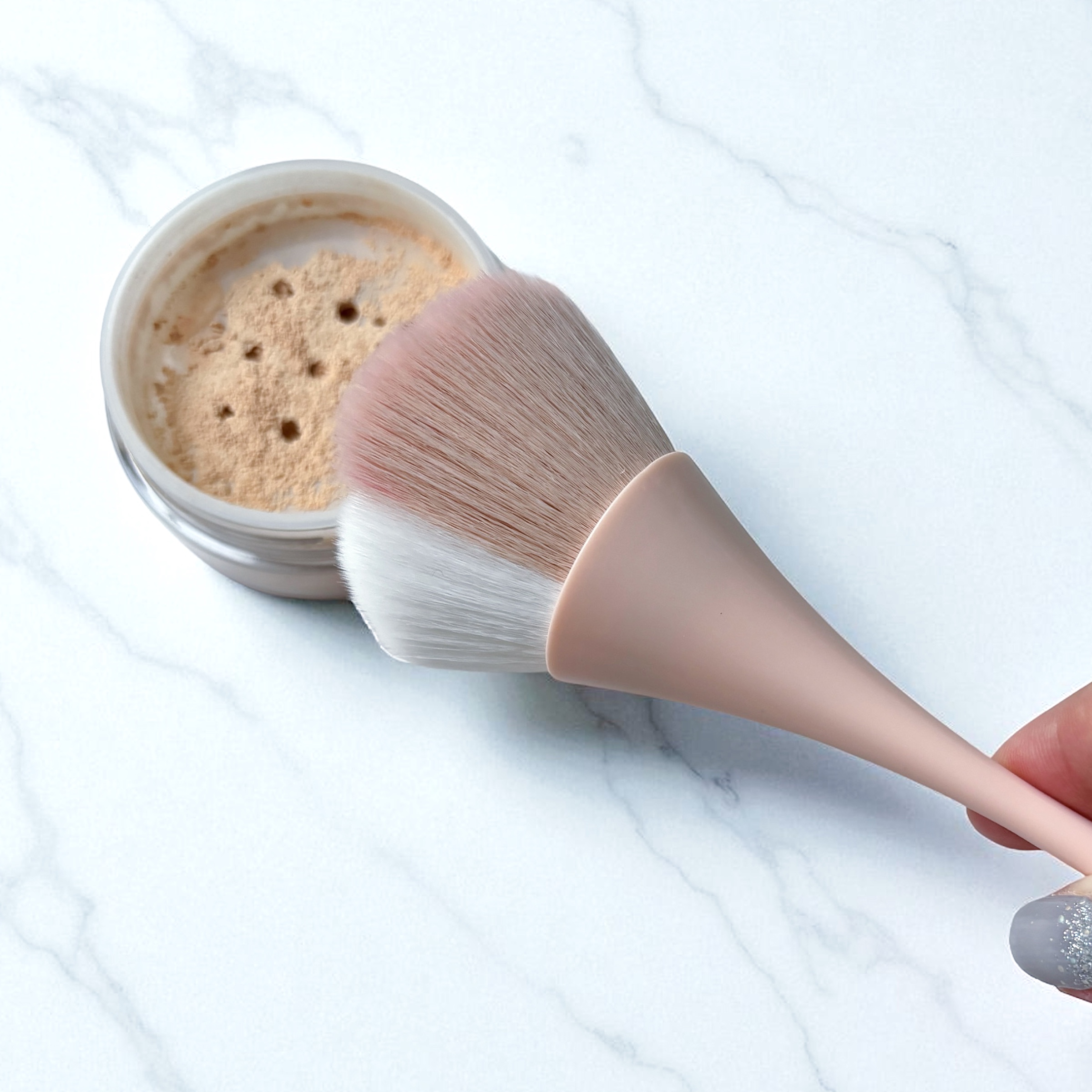 1.ブラシにフェイスパウダーをとり、軽くトントンと余分な粉を落とします。